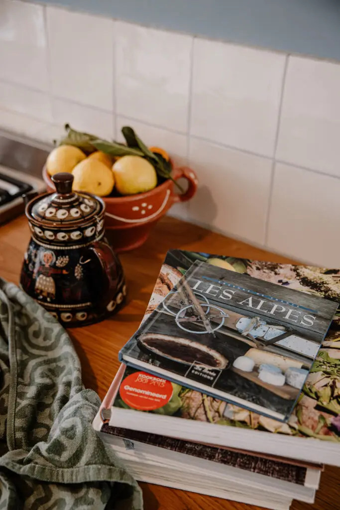 Dans la journée, nous proposons des plats sucrés et salés. Quelques options sont disponibles pour un déjeuner léger. Pour l’apéritif, un plateau de fromages locaux est un excellent choix.